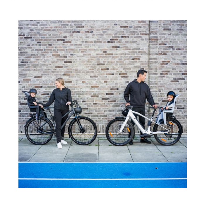 Uniwersalny uchwyt z mechanizmem szybkiego montażu pozwala na szybkie założenie lub zdjęcie fotelika z roweru. Pasuje do większości ram rowerowych, zarówno okrągłych o średnicy 28–40 mm, jak i owalnych o wymiarach 40 x 55 mm. Śruby uchwytu zostały umiejscowione z przodu w celu zapewnienia odpowiedniej ilości miejsca do operowania narzędziami. Najpierw należy zamontować na rowerze uchwyt, a następnie zatrzasnąć na nim fotelik w odpowiedniej pozycji. Cała czynność trwa zaledwie kilka sekund.